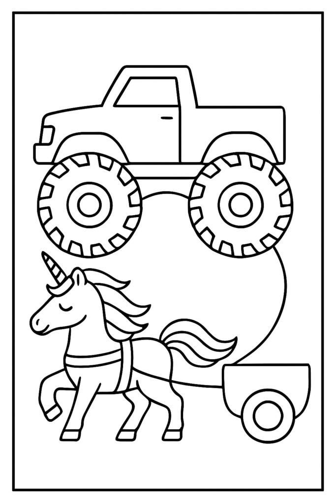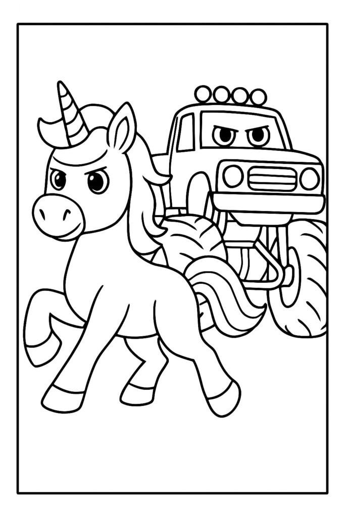 Su unicorncoloringpagesfree.com troverai una serie curata di pagine da colorare di unicorni e camion mostruosi per il divertimento e l’apprendimento:
