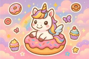 - Stile Kawaii: Facce rotonde, occhi grandi e contorni marcati con palloncini, ciambelle o cuori per un fascino immediato e una colorazione poco faticosa.