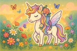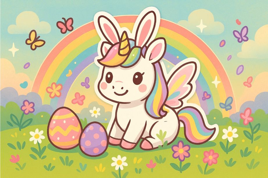 - Prati di primavera: Cieli pastello, fiori e arcobaleni che incorniciano i motivi dell’unicorno e dell’uovo; alcuni siti si concentrano specificamente sulle uova di Pasqua decorate con unicorni come tocco divertente.