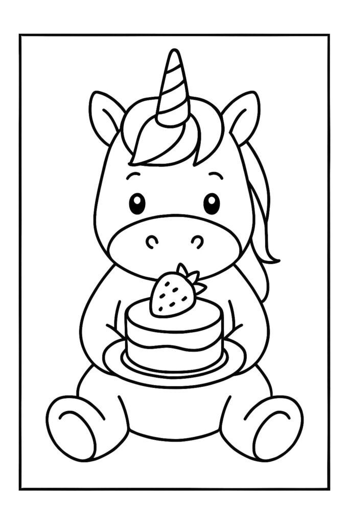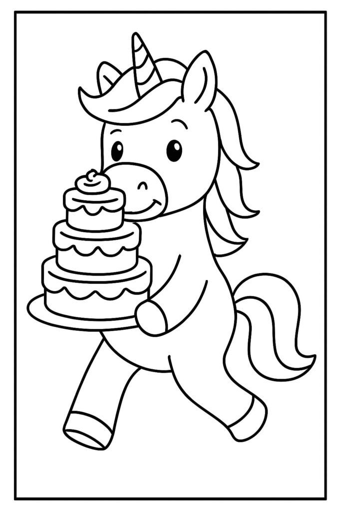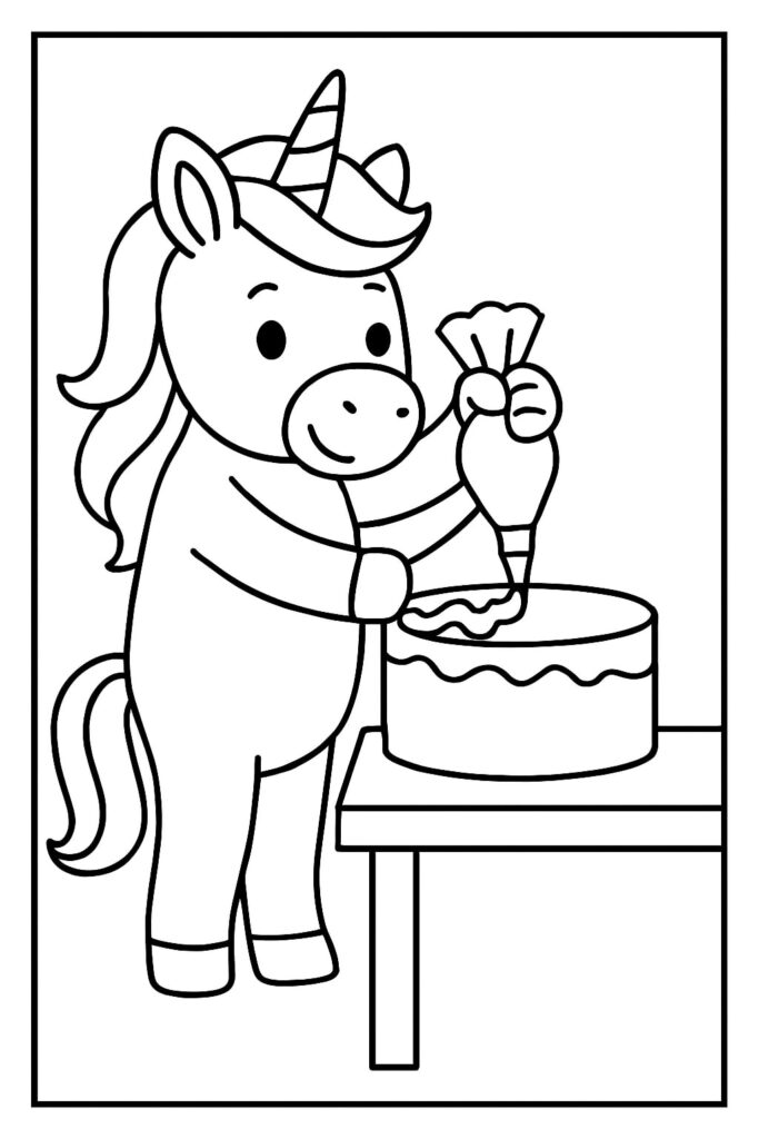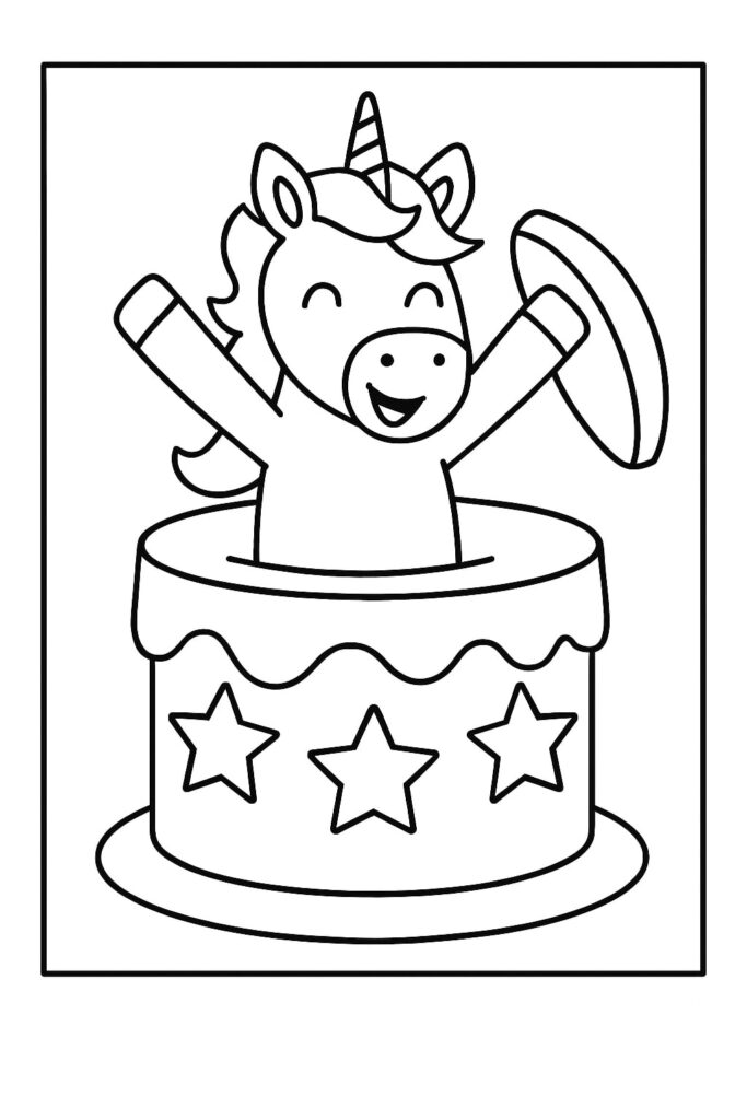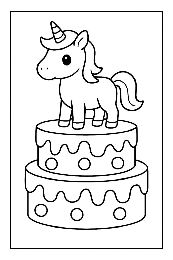 - Le pagine da colorare sulla torta unicorno uniscono l’entusiasmo della festa con un personaggio simpatico per un coinvolgimento immediato.
