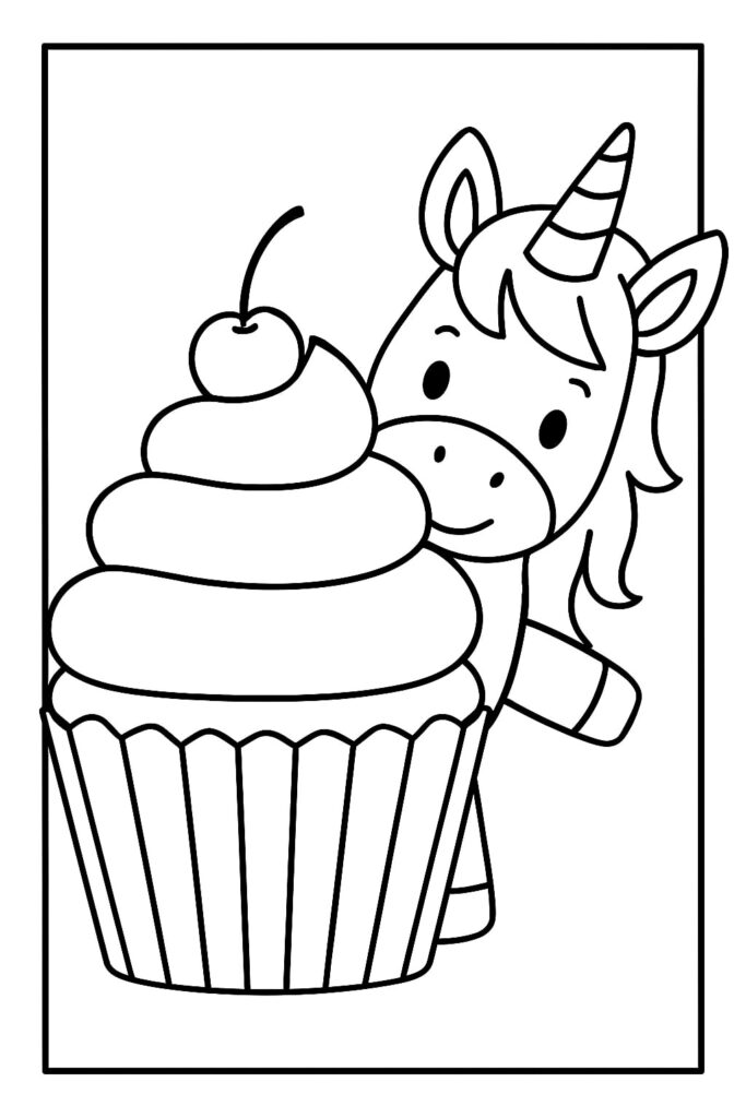 Una torta unicorno combina due cose che i bambini amano: una festa e un personaggio della storia. Molte pagine da colorare presentano una torta a strati sormontata da un corno di unicorno, orecchie e fiori; altre mostrano un’allegra faccia da torta o abbinano la torta a pagine da colorare di cupcake unicorno per una sfilata di dolci. Potrai anche vedere varianti in cui un unicorno è appollaiato su un cupcake gigante o una fetta di torta sorride dal piatto della festa. Il risultato è una narrazione immediata: Di chi è il compleanno? Di che gusto è la glassa? Quale desiderio ispirerà il corno?